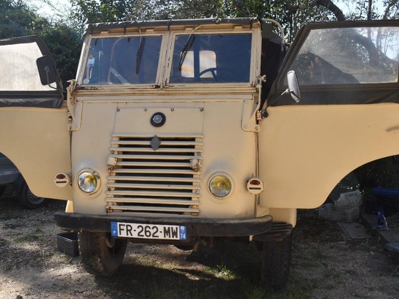 Goélette 4x4 från 1962, tidigare militärt fordon och kommunal bil, registrering i mitt namn för samlarbil. Många servicefakturor från den tiden. Karossen i mycket gott skick, ingen genomträngande rost. Säten nyrenoverade. Startar direkt även efter längre stillestånd. Kapell ren men behöver sys ihop i mitten. Planerad lastflak pga bromsarna är ur funktion.