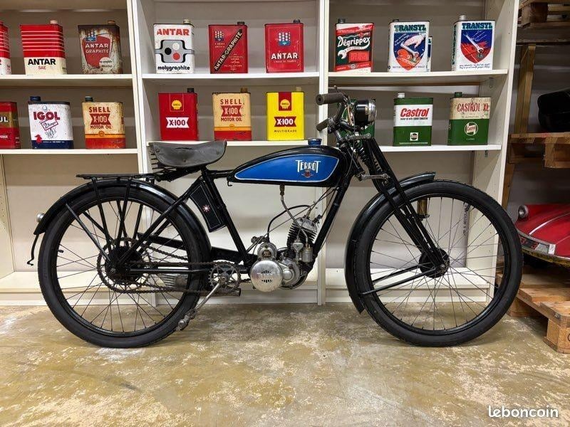 For sale: Terrot motorcycle, Type VML, 1935. Petite BMA. Restored a few years ago, but 2–3 small things still to fix, nothing serious; exhaust pipe missing. No original kickstand. Sold new by the dealer F. Degournay in Viry, Haute-Savoie.