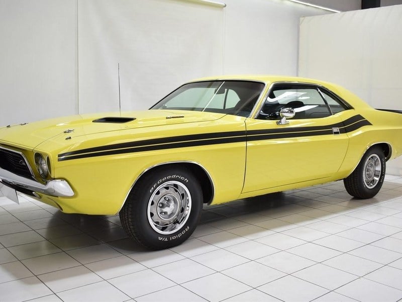 Ref: 103667 Date of registration: 01/ 01/ 1972 Mileage (not guaranteed): 804 Driving: left-hand drive Registration document: Collection Seats: 4 Cylinders: 8 in V Capacity: 5572 cm3 Fuel: SP 98 + additive DIN CV: 275 Fiscal HP: 32 Gearbox: Automatic 3 gears Body colour: Lemon Yellow Interior colour: Black Tyres: Tread: Front 30% + Rear 40% * 12 MONTHS WARRANTY included * PART-EXCHANGE and DELIVERY possible * On-the-road costs (optional): €690 VAT included (New battery, Service (engine oil + filter), 1/ 4 tank of fuel, Bodywork wash + polish, interior cleaning and vacuum) * ‘‘Grey card’’ and ‘‘Collection grey card’’ service (FFVE file included) optional DODGE Challenger (1970 - 1974) 165, 437 ex. 1, 293 km / 804 miles French registration 4 seats V8 340 CI 5, 600 cm3 Automatic gearbox version ATF 3 speeds Electronic ignition MOPAR Carburettor 4‑barrel EDELBROCK Intake pipe EDELBROCK Cam covers MOPAR PERFORMANCE Air filter MOPAR Performance Silicone ignition leads TAYLOR Exhaust headers and stainless steel exhaust system Double exhaust outlet Chrome petrol cap Power steering Tinted windows in colour “Green” Windshield tinted / gradient in colour “Blue” Chrome door mirrors Hood quick release Rear spoiler Black stripe 4 original 14’’ wheels 4 chrome rims 4 BF GOODRICH tyres Drilled and grooved front brake discs Aviation-style brake lines Black interior upholstery Front and rear 2‑point “aviation” seatbelts Black door panels Black dashboard Vinyl-covered dashboard cap PVC-covered centre console Dashboard in PVC 2‑spoke PVC steering wheel PVC gear lever RADIO CD KENWOOD Headlining in Black PVC Front seats with black faux leather Upholstery Black rear bench seat in faux leather Front and rear door panels in black faux leather Condition of the exterior/ body: The car presented here is a January 1972 DODGE Challenger in its period Lemon Yellow colour. The body was restored a few years ago and during that process the shell received a full new paint job. After a professional polish performed with orbital machine by our workshop, we noted a small defect under the paint along the edge of the left rear quarter window. The front bonnet is equipped with drag-race quick-release latches to emphasise the muscle-car nature of this DODGE Challenger. The chrome bumpers are perfectly aligned and in good condition, with no impact marks or oxidation. The Black stripe decals are in excellent condition. The tinted glass and gradient blue-tinted windscreen are in good condition. We noted a lamination on the edge of the driver's window. The 4 14’’ pressed-steel wheels and their chrome rims are in good condition. We noted very slight oxidation on the hub caps. These are shod with 4 BF GOODRICH tyres showing 30% wear at the front and 40% at the rear. This example retains its spare wheel and original jack. Among the more interesting bodywork options for this model, we note: tinted glass, gradient blue-tinted windscreen, rear spoiler and the pair of Hood quick release latches. Interior: The interior has retained its original configuration and presents well. The front seats in black faux leather are in excellent condition. The rear bench in black faux leather is in very good condition. The door panels in black faux leather are also in good condition, with no signs of wear or sagging. The wood-effect inserts of the door panels are in good condition. The headlining in black PVC is also in very good condition. The dashboard in black is in excellent condition, with no signs of fading, cracks or breaks. The original instrument cluster is fully functional apart from the clock, odometer and dashboard illumination. This example is equipped with the factory original power steering option. The 2‑spoke PVC steering wheel shows patina from use. The Kenwood CD radio is fully functional. This example is fitted with aviation-type seatbelts at the front and rear. The carpets in black are in very good original condition, with no wear or fading. Among the interesting interior features, we note: power steering, Kenwood CD radio, aviation-type seatbelts at the front and rear. Chassis: The car on the ramp confirms a sound shell, with no apparent structural corrosion. The fundamentals: sills, floors, boot floor, wheel arches and rails are in good condition. Use reserve: by principle, we cannot guarantee the...