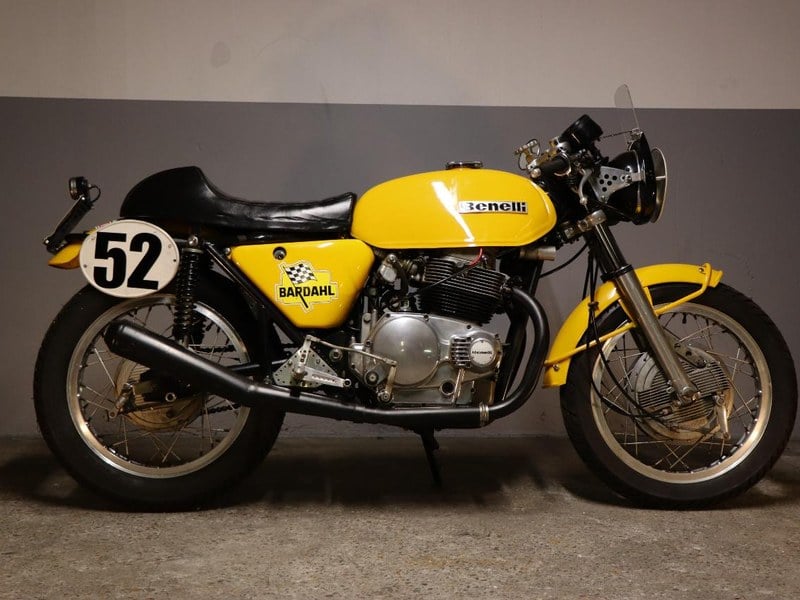 Produced only from 1970 to 1975, the Benelli Tornadoes are rare and sought-after. Our 1972 model, imported from Italy, has been carefully restored with the addition of some customised parts giving it a racing look. A general pre-use inspection is recommended.