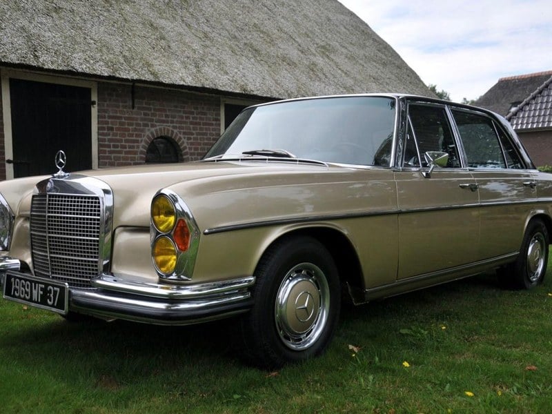 Stunning Mercedes 300 SEL 6. 3, originally French. Original two-tone with a black roof. Original black leather upholstery. Electric windows and air conditioning. Fully serviced; numerous new parts. No rust. Ready for long-distance travel.