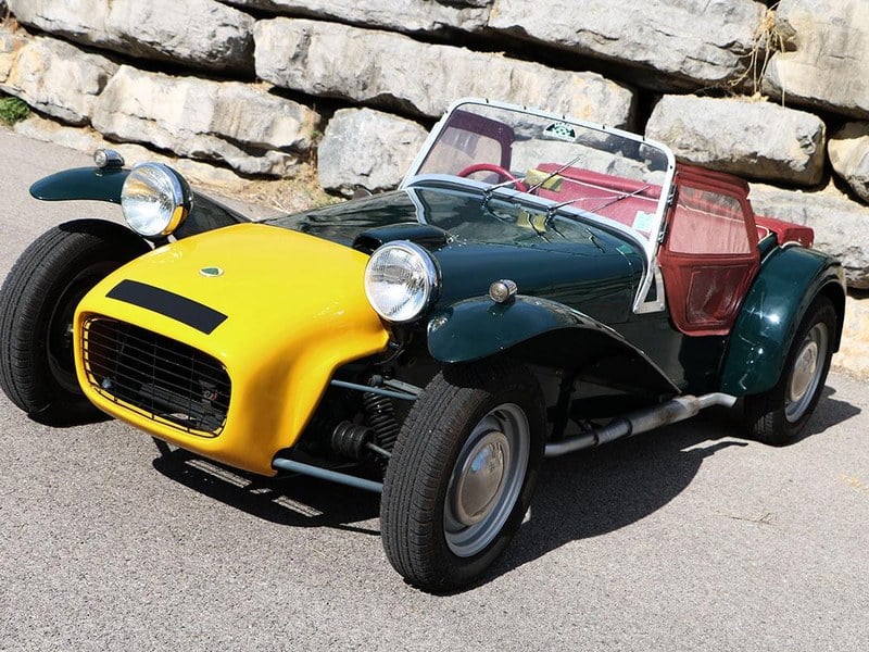 Classic Car Design offers you the Lotus Seven Series 2 "678 LBJ"! It is from 1962. It arrived in France several decades ago and has been maintained and preserved with maximum original elements, a Seven in a state of rare authenticity. The car is accompanied by a file of invoices dating back nearly 30 years. The original "registration book" is present and lists all the English owners, the first owner being a RAF pilot... Its last French owner kept it for more than 20 years.
