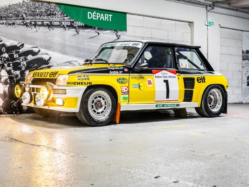 Für die Saison 1982 setzte Renault seine R5 Turbo in bestimmten Läufen der Rallye-Weltmeisterschaft ein, darunter der gefürchtete Bandama-Rallye Côte d’Ivoire. Ausgetragen über Tausende von Kilometern afrikanischer Pisten, die äußerst anspruchsvoll waren, zählt dieser Event zu den anspruchsvollsten seiner Epoche. Das präsentierte Exemplar erhielt Jean Ragnotti anvertraut, eine ikonische und charismatische Figur des französischen Rallyesports, dessen Fahrstil perfekt zum Temperament des Autos passt. Gemeinsam mit Jean-Marc Andrié stellte er sich extremen Bedingungen und einer Spitzenkonkurrenz, insbesondere Michèle Mouton. Trotz eines vielversprechenden Rennbeginns mahnt der Lauf an seine Härte: Nach einem Vorfall und einer schlecht antizipierten Situation hebt sich das Auto über eine Bodenwelle, fällt heftig zurück, was zu einem Ausritt von der Piste und dem Ausfall führt. Anschließend wird es nach Frankreich zurückgebracht und kehrte in die Werkstätten von Renault Sport zurück.