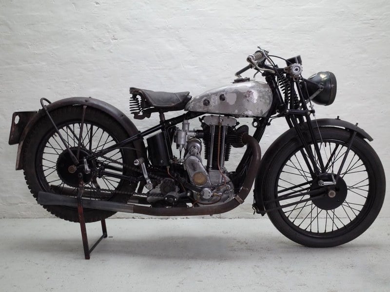 This restoration project of a 1932 Sunbeam Model 90 comes from a long‑standing owner. The chassis and engine numbers match, as evidenced by the older registration documents that accompany the Sunbeam. Other contemporaneous documents indicate that the Sunbeam was imported into Denmark in the 1950s by an English gentleman. The bike then remained laid up from 1956 to 1980, when it changed hands and a restoration was undertaken.