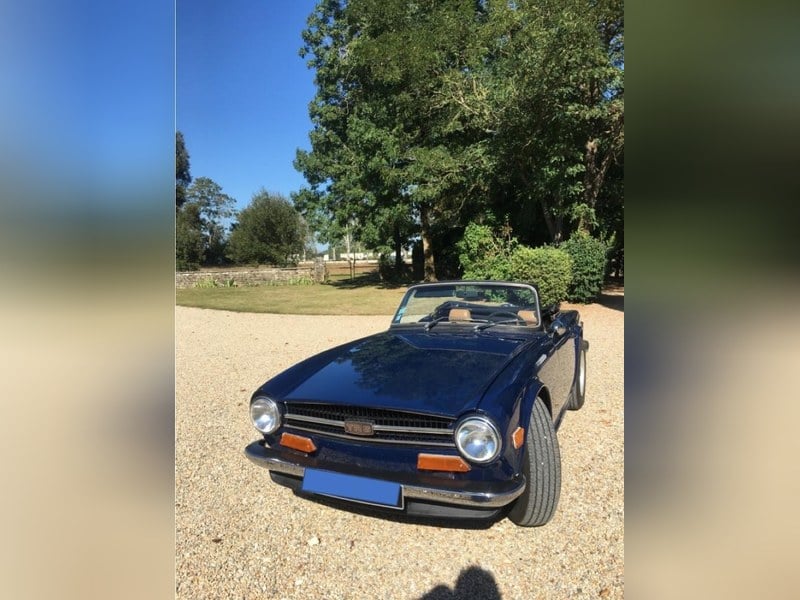 Triumph TR6 de 1973 Navy Blue (assento e capa de capota cor havana), importada dos EUA (Califórnia: íntegra, sem corrosão) em agosto de 2020 (dossiê completo de importação)