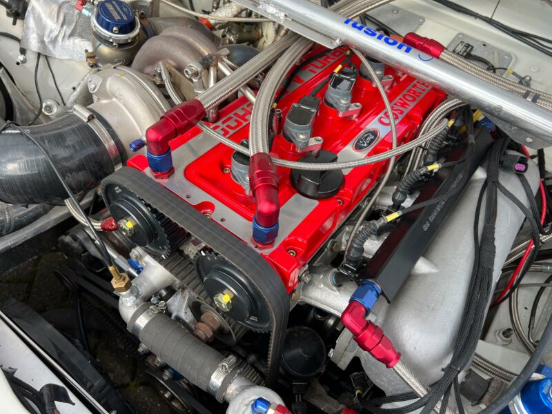 That’s not to say that this car doesn’t have a racing pedigree though. The owner informs us that prior to the rebuild it was raced in the Formula Saloon Championship by Gary Woodcock so it has cut its rather sharp and pointy teeth at the track. And that was always the appeal of the RS500. Homologated so that Ford could remain competitive with a car that was already at the top of the pile it’s that motorsport legacy that made it so popular, not to mention the 224 brake horsepower on tap, available in the 500 road-going versions that were produced. The turbocharged Cosworth YB engine that was fitted to the Sierra Cosworth was also hugely tune-able and power figures could be boosted way beyond factory figures, further increasing the car’s appeal.