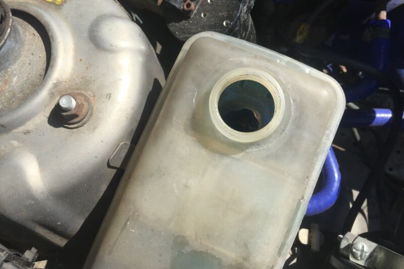 7) Start the engine with the radiator/expansion tank cap still off to purge the system of any air – you will see it bubble and cough as the air is released. As the fluid level drops, top up with fresh coolant until all of the air has been expunged and the fluid is at the correct level, then replace the radiator/expansion cap.