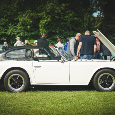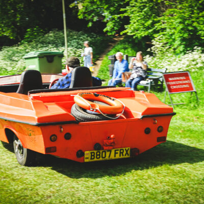 The cars then make their way into the field, where they park up for the day. Hundreds of cars, with little regard given to any sort of trend or following. If you want to see a 1957 Chevrolet Bel Air parked behind a 2CV, this is the show. Big Americans, traditional Brit classics from Austin and Triumph et al, modern classics, super cars, a military tracked tank and even a carboat (no, really, look at the pictures). It’s all here. Something to satiate every automotive wont. Local companies like the excellent Porsche specialist, Wrightune, put up stands and showcased impressive metal for people to look over. Something, truly, for everyone.