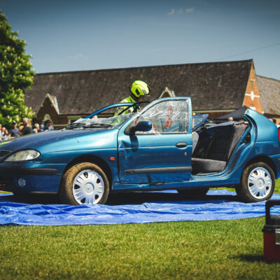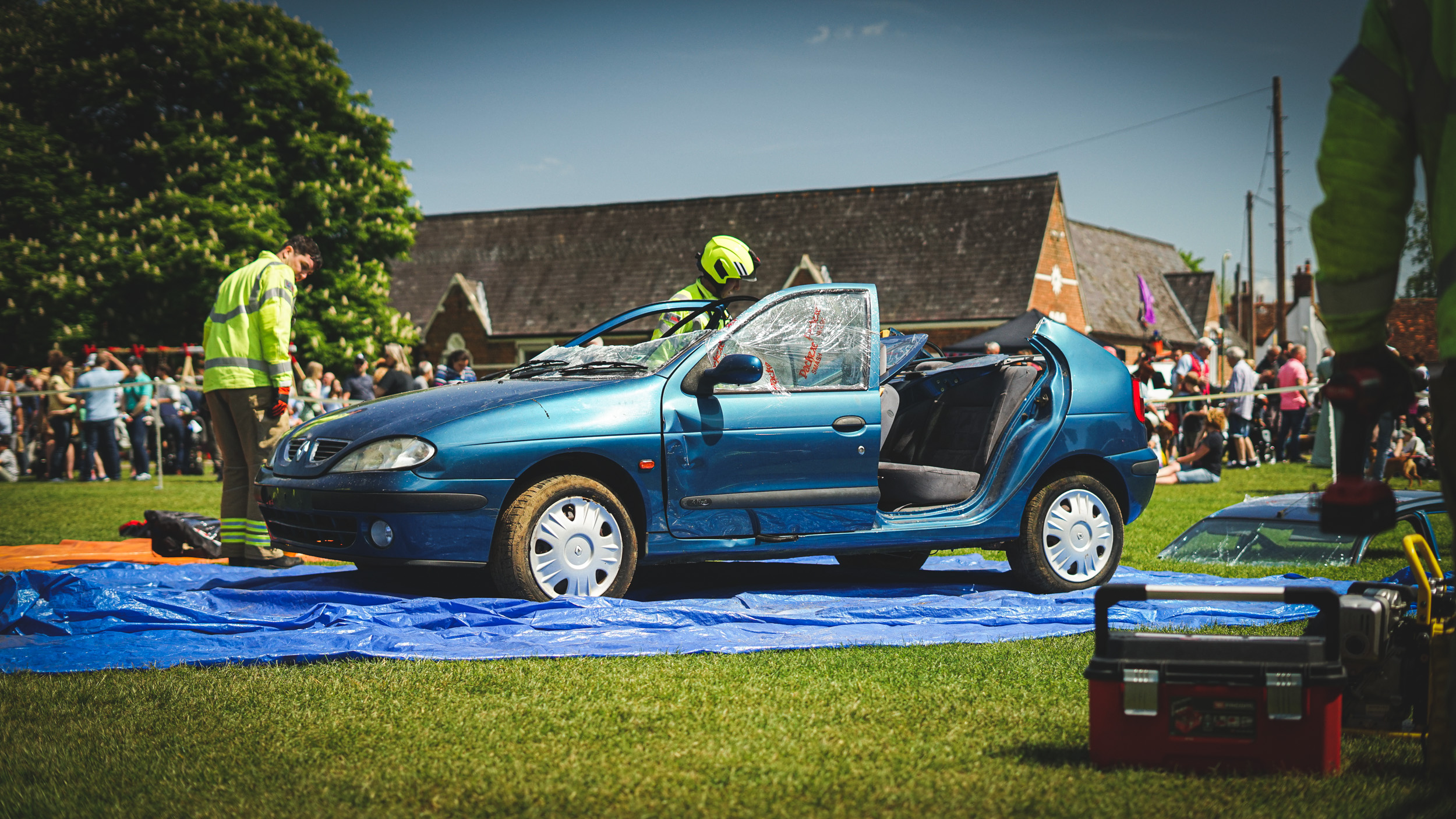 With everyone parked up, there was of course a veritable smorgasbord of metal to drool over, but that’s not where the fun stopped. At the top end of the field, there was a small marked out area with, curiously, a slightly dead looking Renault Megane in the middle. As it turned out, this was made into a convertible by volunteer firefighters as part of an RTC demonstration, in which they cut the Mayor free. If you want a slightly more flexible than normal Megane, hit us up.