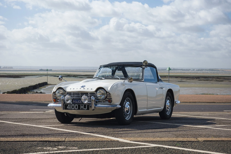 This car is believed to be the only surviving Police TR4 in existence, and it has been comprehensively restored by TR royalty, namely Neil Revington at Revington TR. It is a 1962 TR4 that began life with Southend on Sea Police where it was equipped with the usual array of rozzer paraphernalia including Winkworth bell, PYE communication radio, and police signage.