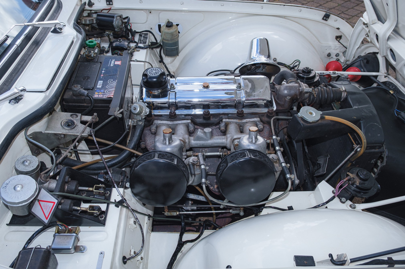 The car was extensively restored by Revington around 16 years ago. As you might expect, the work was done to a very high standard and the original features were carefully replicated. It has covered few miles since, largely being stored in a dehumidified garage and never used in the wet. Consequently, its white paintwork and various official detailing remaining smartly intact.