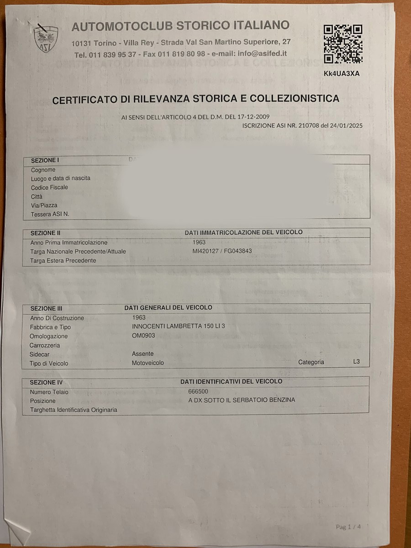 - Nicht beim italienischen Automotoclub Storico Italiano registriert