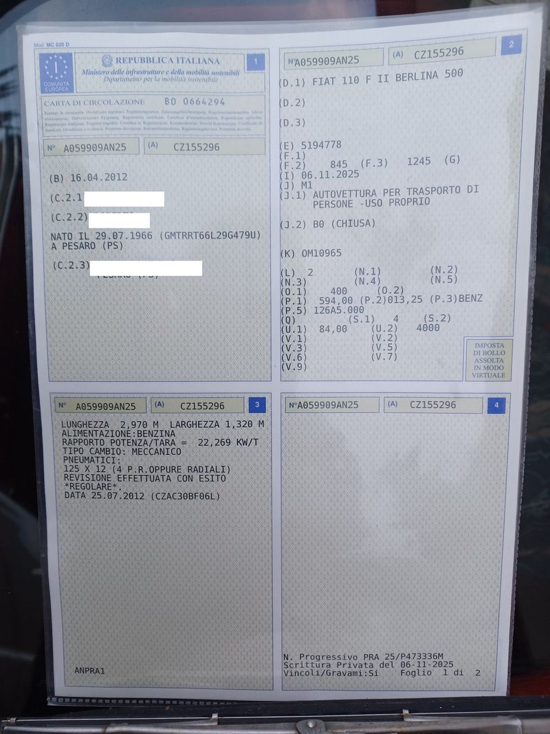Este exemplar de 1971 tem uma história interessante, tendo sido originalmente adquirido por uma senhora em Arezzo que o utilizou para condução citadina até 1998. O carro passou depois para o seu filho, que realizou uma restauração, incluindo uma mudança de cor do azul elétrico original para amarelo, mantendo grande parte da originalidade do veículo.