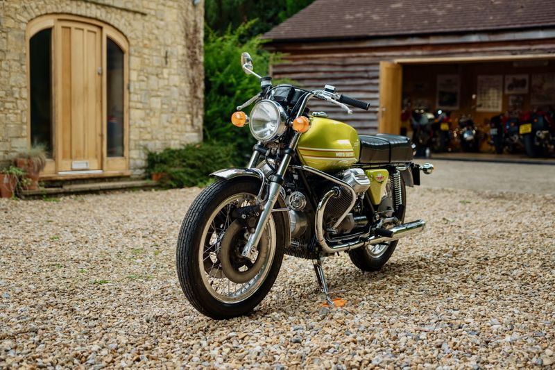 This 1972 example stands out for its factory-fitted front disc brakes, a rare option for this model that offered vastly superior stopping power compared to the drum brakes typically fitted to motorcycles of this era. Having undergone a comprehensive restoration, this V7 Sport presents beautifully in its striking original lime green paintwork and comes with an impressive history file.