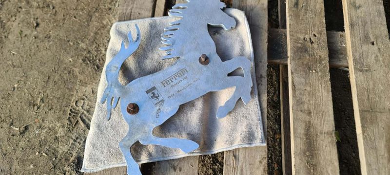 Aqui temos sinalética de época com um excelente tema: Ferrari. Completo com um reluzente 'Cavallino Rampante' (cavalo rampante) e a evocativa grafia 'Ferrari', este letreiro seria uma adição maravilhosa à sua parede.