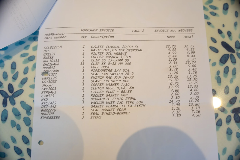 The paintwork is the result of an older restoration. The vendor acquired the car in early 2024 and has invested heavily using well regarded marque specialists. The work has included rectifying minor paint issues with a partial respray. The car was also entrusted to Classic MG Services for a post-purchase check over. That resulted in a range of minor alterations, including fitting a Tourist Trophy stainless steel exhaust and replacing the alternator. The work totalled over £2,000.