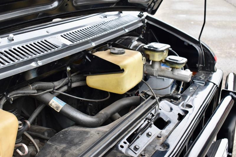 Fini dans le gris classique sur carrosserie noire avec des bandelettes rouges, l’extérieur se présente particulièrement bien, avec uniquement des signes d’âge mineurs, tandis que les roues rouges de 15 pouces chaussées de BFGoodrich complètent le look immédiatement reconnaissable. À l’intérieur, l’habitacle en cuirette gris, noir et rouge offre des places ceinturées pour sept, un toit ouvrant, une chaîne stéréo Simple-DIN et des détails d’époque tels que le volant en bois et chrome et la commande d’origine. Le compartiment moteur et le dessous du véhicule paraissent propres pour leur âge, et l’inclusion de souvenirs à thème « A Team », y compris une photo des membres, une plaque signée et une plaque d’immatriculation à la Californienne, ajoute à son charme de pièce de collection fun et au caractère affirmé. Peu de classiques allient aussi bien impact culturel et présence routière que ce Vandura, en faisant une addition séduisante à toute collection sérieuse ou axée sur le divertissement.