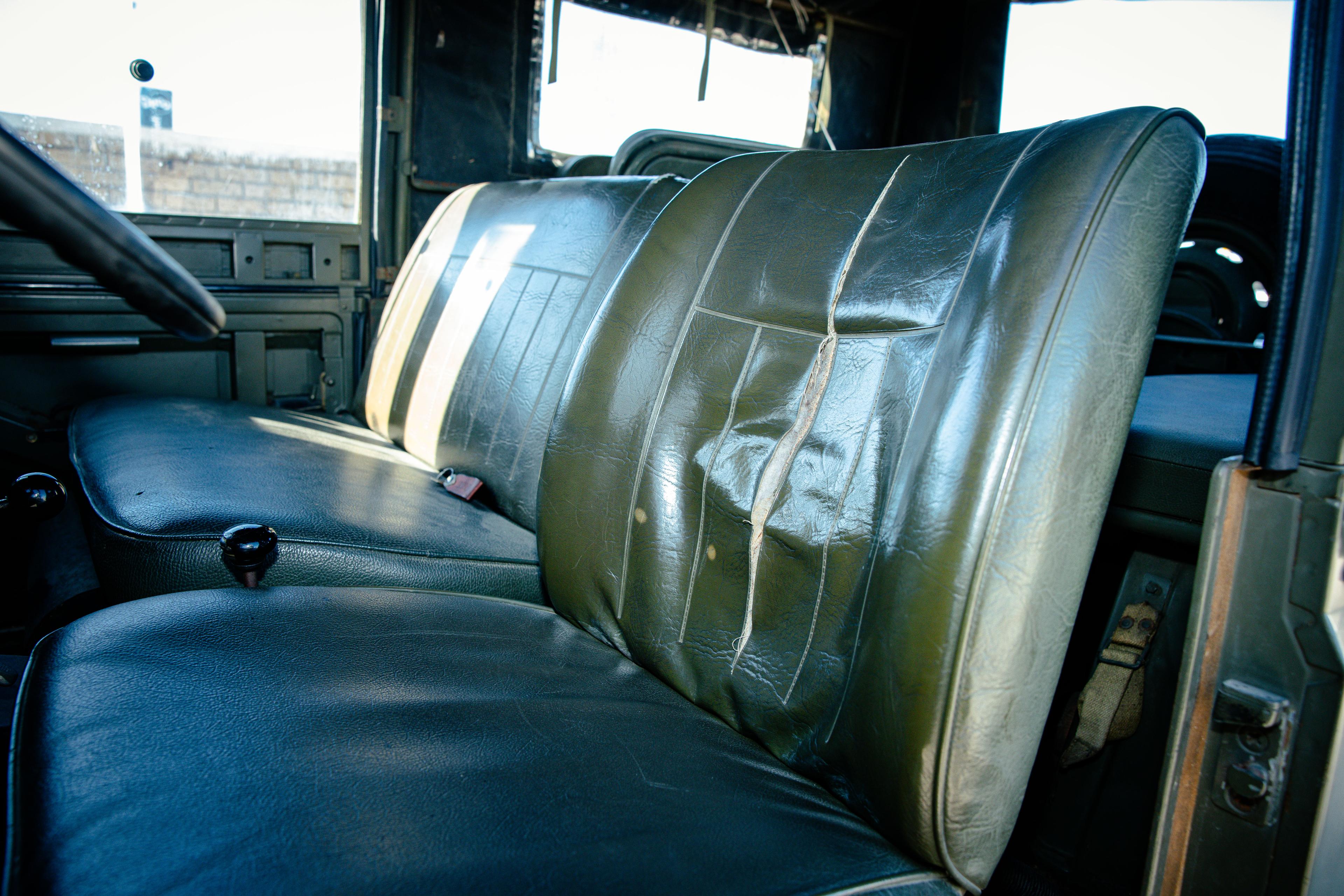 • Green vinyl seats in fair condition with some damage on driver's seat