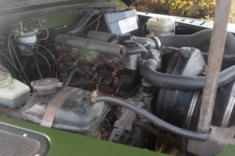 Adquirido en 2022, este 110 ha sido objeto de mejoras cosméticas y mecánicas extensas. El motor fue retirado y reconstruido profesionalmente por Town & Country Land Rover en enero de 2021, y desde entonces se ha prestado atención mecánica adicional que incluye nuevos amortiguadores, cilindros de embrague y un eje de transmisión de repuesto. En el plano cosmético, el vehículo se ha beneficiado de puertas nuevas, capota de lona nueva, retrabajo de los asientos delanteros, pintura fresca en su color verde oscuro original y varios otros detalles descritos a continuación.