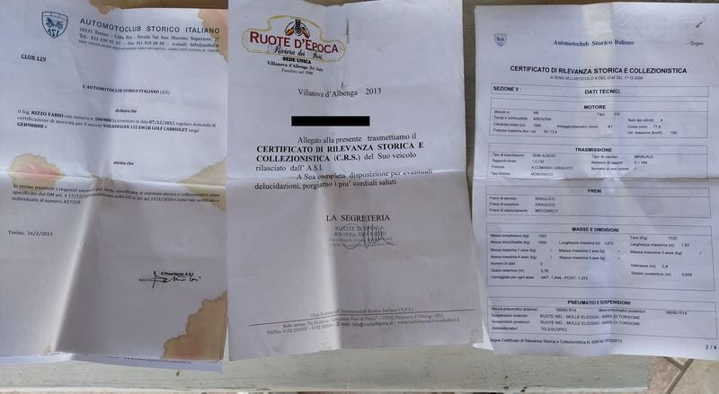 Vehicle registered with the Italian Automotoclub Storico Italiano
