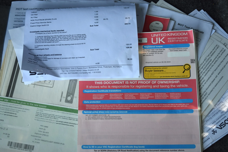 The history file show a run of 15 service stamps from new up to March 2025. There are plenty of receipts and invoices for other work, including to the brakes in 2022. The car will be sold with a fresh 12-month MOT and the choice of BBS-style alloys or standard five spokes as shown.