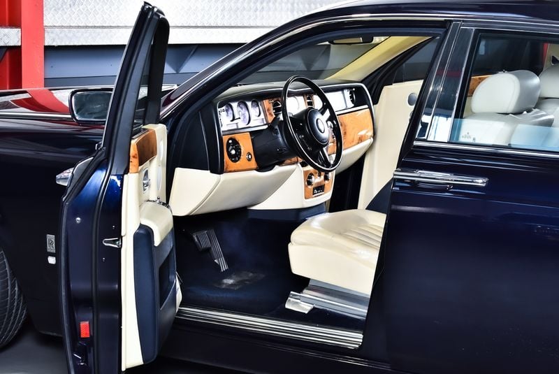 Este elegante coche de color azul oscuro ha cubierto apenas 50,626 km desde nuevo. En el interior, se destacan una lujosa tapicería en crema confeccionada a mano y amplios relieves de Maple Birds Eye. Los extensos registros de mantenimiento desde su etapa en USA, UAE y Europa indican revisiones regulares y trabajos asociados.
