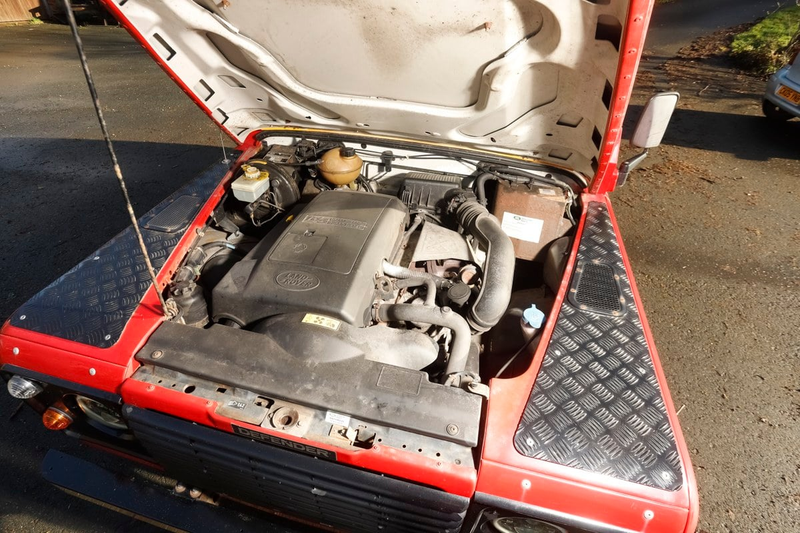 Agora pintado de vermelho depois de uma repintura antiga, está em bom estado com jantes recentes e pneus BF Goodrich AT novos. A cabine resistente ao desgaste está em bom estado para um veículo de 21 anos e apresenta seis lugares, incluindo um par de bancos na área de carga ampla.