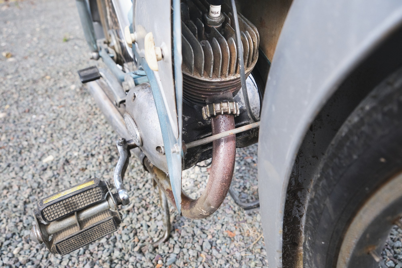 Dit specifieke voertuig is in de afgelopen 57 jaar vrijwel ongewijzigd gebleven. Het wordt aan de markt aangeboden met slechts twee vorige eigenaren en volgens de DVLA had het tussen 1968 en 2025 slechts één geregistreerde houder. Het lichtgewicht frame en de mechanische onderdelen dragen de patina en roest die je zou verwachten bij een voertuig dat bijna 60 wordt. Het is nog steeds mogelijk om de originele serienummers in onderdelen en het tubulaire chassis af te lezen, terwijl een geperst Made In Italy-teken het koplampenmodulekapsel siert.