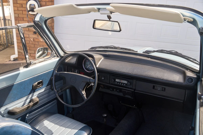 Dit model uit 1973 bevindt zich sinds 2008 in eigendom van de huidige eigenaar en heeft een volledige body-off, moer-en-bout restauratie ondergaan. Uitgevoerd tot op het blote metaal en opnieuw gespoten in Marathon Blue metallic - een echte Volkswagen-kleur - de carrosserie kreeg nieuwe vloerpanelen, een volledige Dintrol-corrosiebehandeling en een nieuw bedradingstoom. Het interieur werd refurbished door Newton Commercial, en een nieuwe Sonnenland-afdekking werd gemonteerd. Mechanisch gezien zijn alle lagers, remmen, vering en koppelingsmechanisme vervangen door nieuwe VW-onderdelen, en de auto werd opnieuw afgesteld door Moores Classic VW. Cruciaal: het wordt geleverd met een certificaat van het Volkswagen Museum dat de identiteit van het voertuig bevestigt, naast een aanzienlijk dossier met facturen.