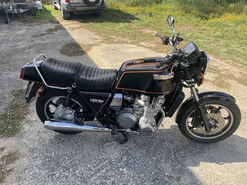 Als een van Kawasaki's paradepaardjes stond de Z1300 bekend om zijn soepele vermogensafgifte, indrukwekkende koppel en het kenmerkende zescilinder motorgeluid waarmee hij zich onderscheidde van zijn tijdgenoten. Dit exemplaar uit 1983 valt op door zijn originaliteit, lage kilometerstand en zorgvuldige onderhoud en maakt deel uit van een zorgvuldig samengestelde collectie klassieke motorfietsen in Portugal.