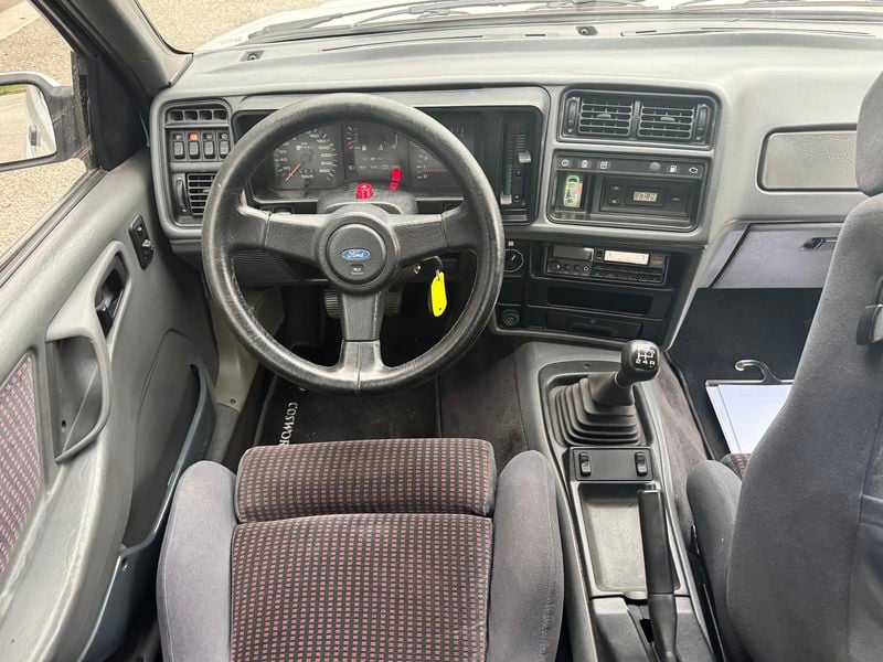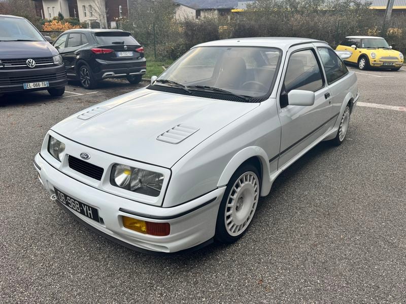 Ons exemplaar uit 1986 is in Frankrijk geregistreerd en wordt gepresenteerd in wit met een grijs interieur. Na een aanzienlijke motorrevisie in 2022 behoudt deze RS Cosworth de originele bekleding, die is gerestaureerd naar fabrieksconditie, en rijdt op 17" Compomotive TH-wielen die zijn sportieve karakter versterken. Met actueel onderhoud en een geldige Contrôle Technique tot mei 2027, wordt dit zeldzame Ford-prestatie-icoon naar verluidt klaar om van te genieten.