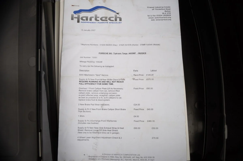 De markt lijkt de 993 te waarderen omdat hij het oorspronkelijke recept voor de luchtgekoelde motor mogelijk perfectiseert. Goede voorbeelden zoals deze, met indrukwekkend onderhoud door specialisten, springen eruit. Het komt op de markt met extra geruststelling van een APK geldig tot juni 2026 zonder afkeurpunten.