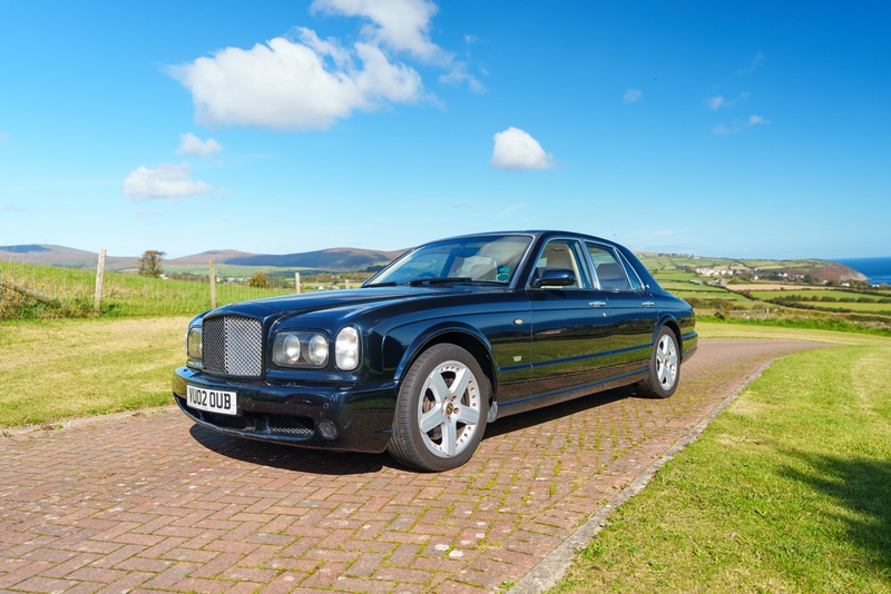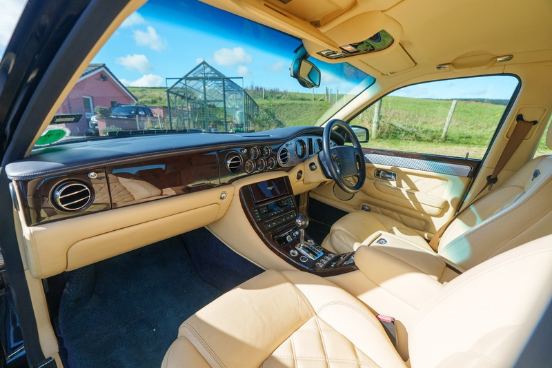 Geportretteerd door de huidige eigenaar als zijnde in pristine conditie zowel van binnen als van buiten, en “een echte koets voor een heer”, is deze Arnage een Mulliner T-model. Dat duidt erop dat hij is vervaardigd door Bentley’s coachbuilding-artiesten, die in dit geval Zwarte Saffier-metallic lak hebben gecombineerd met een roomkleurig interieur en contrasterende marineblauwe tapijten. Discremente Mulliner-badges sieren de vleugels, wat gepast is, terwijl het woord ook in de tredeplaten tot aan de koninklijk blauwe tapijten is gestempeld.