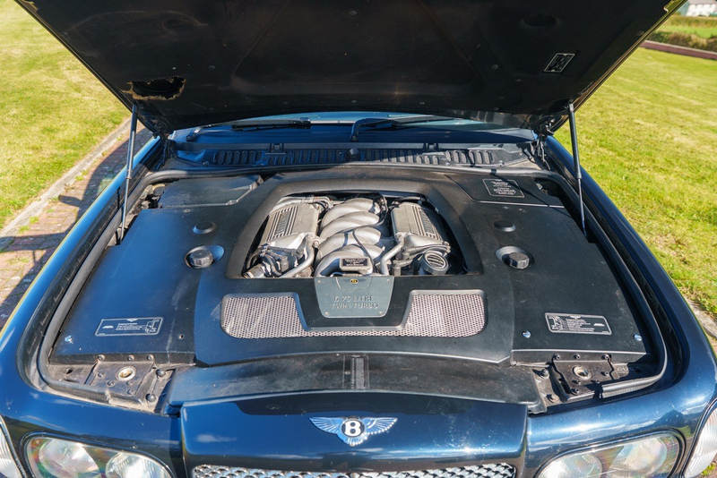 Het grootste pluspunt van deze auto is de opmerkelijk lage kilometerteller, bevestigd door een gedetailleerd portfolio met service- en onderhoudsdocumentatie. Dit legt op zijn beurt de onberispelijke staat van het interieur uit, wiens weelderige roomkleurige lederen bekleding duidelijk is verzorgd door zowel huidige als vorige eigenaren, en zijn Bentley-logo’s onder de hoofdsteunen nog steeds zijn genaaid. De interieur-chroomwerk en gepolijst houten inlegsel zijn in uitstekende conditie, terwijl periodekenmerken zoals een Alpine dvd-speler en afstandsbediening in de deurbeugels liefdevol zijn bewaard als tijdscapsels van de millennial oorsprong van deze auto.