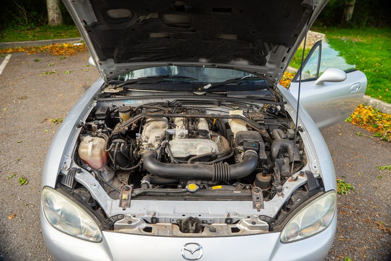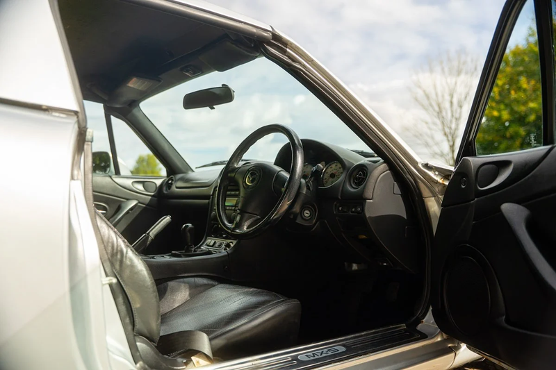 Deze 2001 1.8L Sport heeft minder dan 50.000 mijl afgelegd in handen van twee eigenaren. Uitgevoerd in zilver met een zwarte lederen cabine, is het een nette en bruikbare illustratie met ruimte voor verbetering. De onderhoudsrapporten tonen aanzienlijke recente investeringen, waaronder een nieuw blauw mohair-dak met glas-in-zet in 2023 en een remrevisie in 2024. Het remwerk omvatte remklauwen, schijven, remblokken en een vloeistofverversing. De banden zijn onlangs ook vervangen.