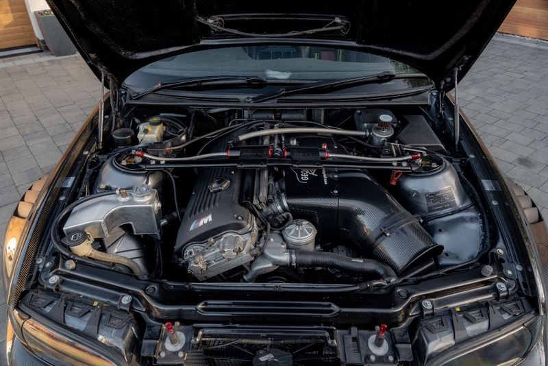 De S54-motor is volledig opnieuw opgebouwd met verbeterde internals, verbeterde koelsystemen en een reeks motorsportcomponenten. Het chassis beschikt over een volledige T45 GRID-kooi, naadgelaste omhulling, verstevigde bevestigingspunten en een volledige ophangingsrenovatie met instelbare coilovers, race-bussen en bokstuurcorrigerende afregeling. De aandrijflijn profiteert van een GearLab Motorsport Spec Drexler sper-diff met BMW Motorsport-verhouding 4.10, terwijl Brembo monoblock remklauwen het remmen verzorgen. Het interieur is gestript en doelgericht, met Recaro Pole Position-zitten, Schroth-harnassen en een AIM MXS Strada digitale teller. Ondanks de track-focus behoudt de auto een volledig werkend OEM-verwarmingssysteem met demister en digitale bedieningselementen, waardoor hij onder alle omstandigheden bruikbaar blijft.
