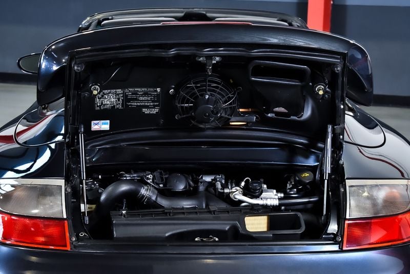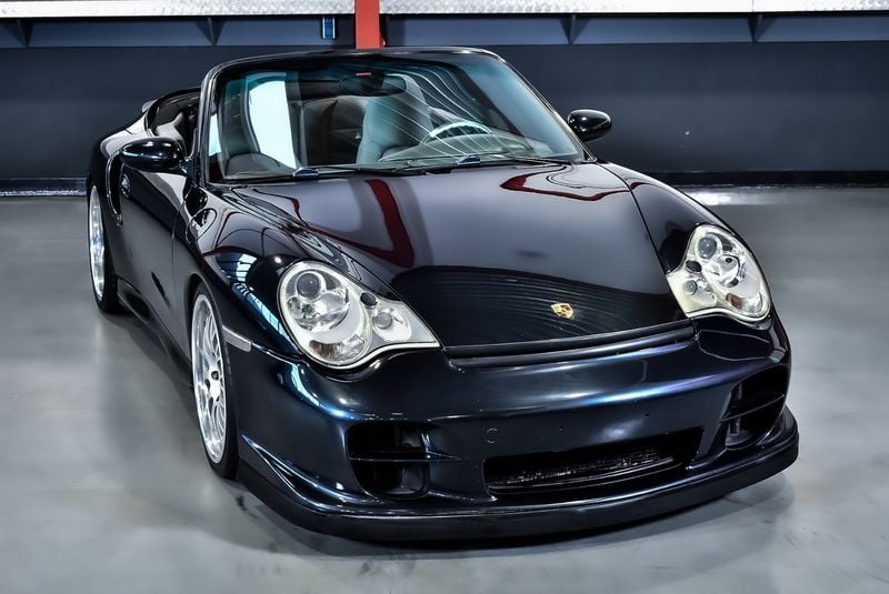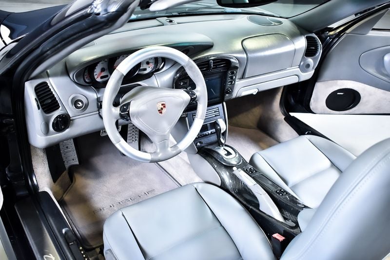 Deze aantrekkelijke donkerblauwe metallic late-model 2004 Turbo Cabriolet verhoogt de drama-factor nog verder met opgewaardeerde velgen en volledige bodykit. Binnen is er een goed onderhouden volledig lederen interieur met koolstofafwerking dat het ouderdoms- en kilometertalige verhaal van de auto tegenspreekt.