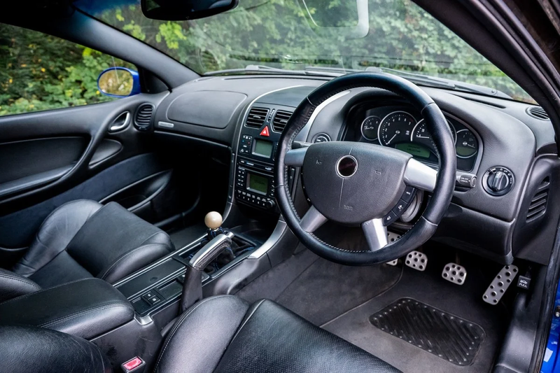 Hier is een kans om wellicht een van de beste RHD muscle cars van de afgelopen 25 jaar te proeven. Slechts 62 Monaro’s in de UK-markt werden uitgevoerd in zijn kenmerkende Impulse Blue metallic, waardoor deze goed onderhouden auto een zeldzame vondst is. Hij verkeert in goede staat door het hele, geholpen door een recente voorzijde-overspray die bumper, vleugels en motorkap uitschreef om kleine steenslag te herstellen. De Vauxhall-badges zijn vervangen door Montani Racing-items terwijl 2,5 inch roestvrijstalen uitlaatpijpen en LED mistlampen de aandacht van de huidige eigenaar voor cosmetische details tonen.
