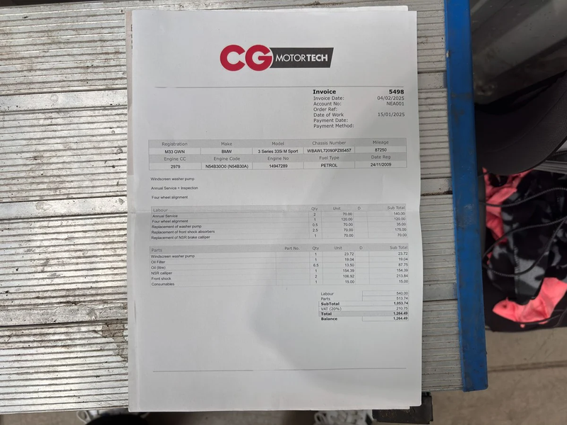 - 15/01/25: onderhoud, voorste dempers, remklauw, wieluitlijning bij 87.250 mijlen