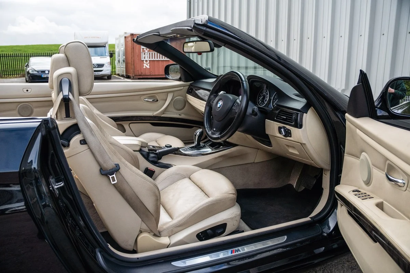 Deze 2009 335i E93 cabrio is een facelift-model met dat M Sport-pakket en de toevoeging van Highline-luxe-afwerkingen. Uitgevoerd in Black Sapphire met een Dakota-witte leersoftware en Poplar Wood-innenafwerking, is het een very smart en mooi gespecificeerd exemplaar. Die inklapbare harde kap biedt coupé- of cabriomodus met een druk op de knop.