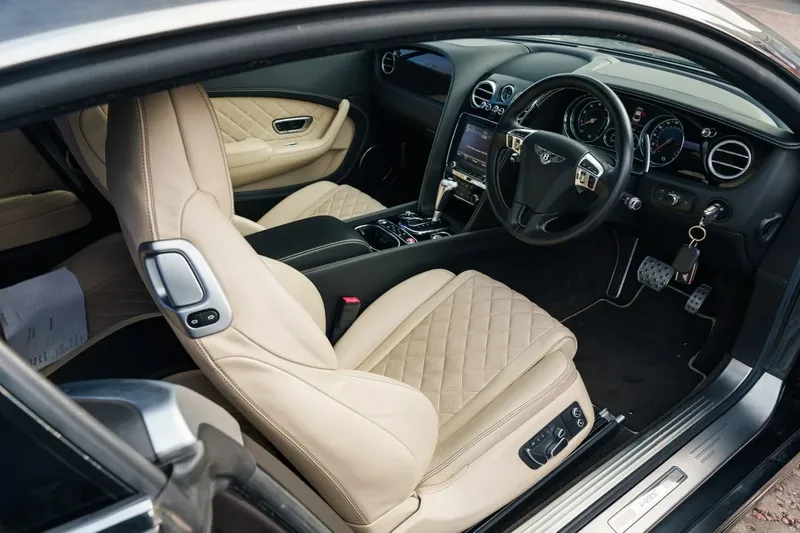 - Lederen zitplaatsen met embossed gestikte Bentley-logo’s op de hoofdsteunen