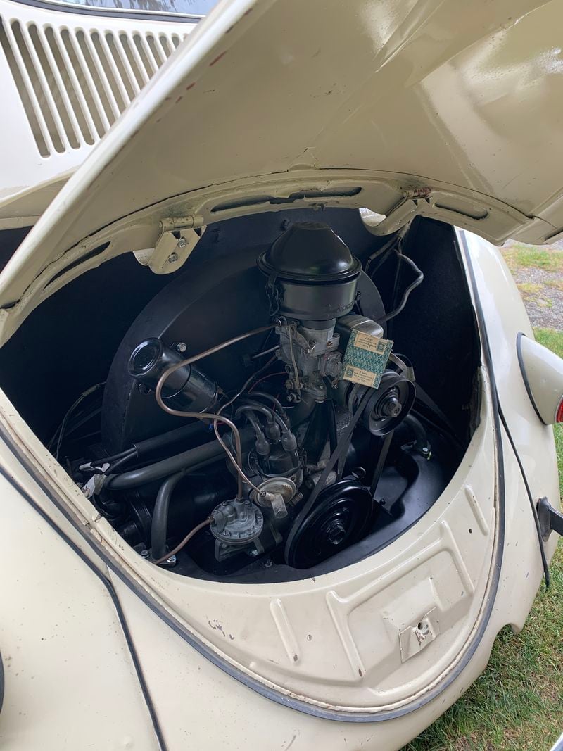 Chirping away behind the cabin of this early VW Beetle sits its 1.2-litre air-cooled four-cylinder boxer engine. This wonderful unit sends all of its 30hp to the rear wheels via its four-speed manual split case gearbox. First gear pops out sometimes and needs a gearbox nose fix, however car can still be driven any other gear no problem.