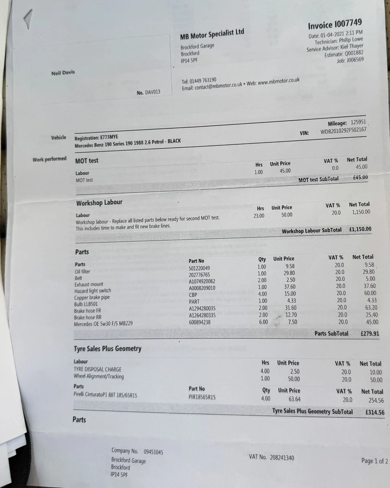 - 2.12.96 66,799 miles Malaya Bromley Mercedes