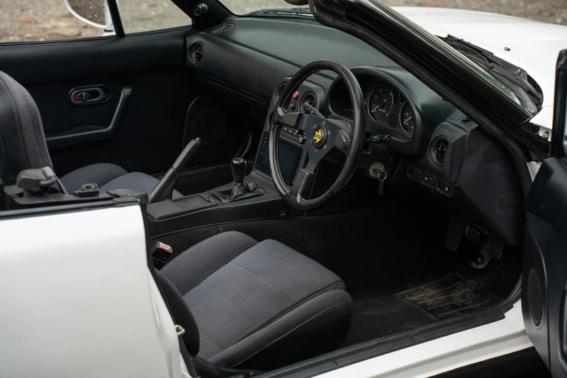 Este MX-5 em particular é um modelo de primeira geração de 1990 restaurado de forma respeitosa, que recebeu importantes renovações mecânicas nos últimos anos. Possui correia de distribuição de substituição, bomba de água e cabos HT, com trabalho também realizado na suspensão. Mantém as características de condução ágeis no asfalto de estrada, tal como é apreciado pelos entusiastas do MX-5, e o seu motor de 1,6 litros continua a subir as rotações com facilidade.