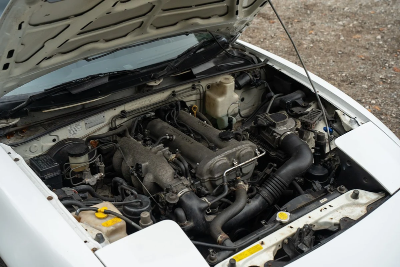 A carroçaria parece estar em excelente estado, sem amolgadelas óbvias ou problemas estruturais. O exterior foi repintado em branco brilho, com vestígios de excesso de tinta junto aos faróis e aos guarda‑lamas, enquanto as rodas de liga de setes raios se beneficiariam de restauração. Os futuros proprietários terão a opção entre teto de lona ajustado ou um teto rígido separado, aumentando as credenciais deste carro para condução diária ao longo do ano.