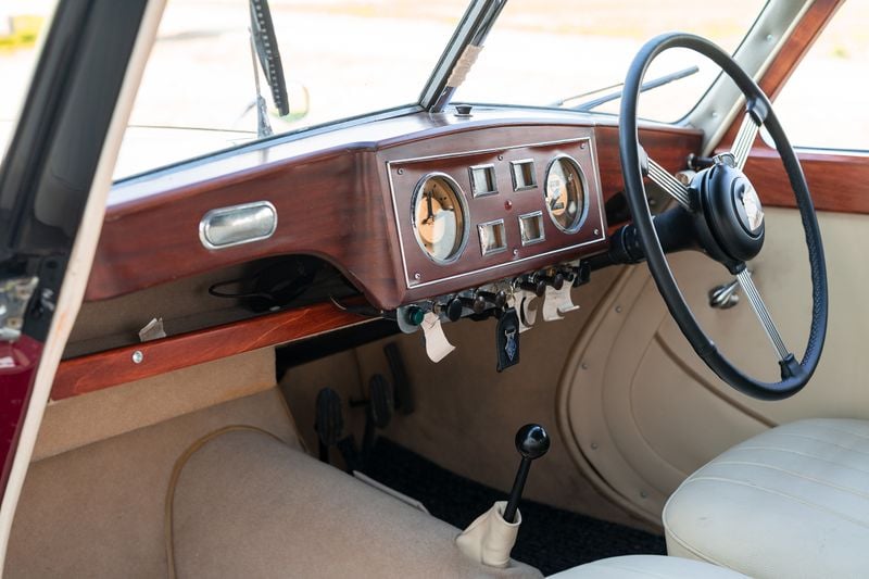 Efter att i flera år ha förvarats i ett uppvärmt showroom kommer bilen nu ut på marknaden med en tysk TÜV-inspektion giltig till april 2028. Denna karaktärsfulla Riley utgör en övertygande möjlighet för dem som dras till efterkrigstidens brittiska motorer i sin mest engagerande form.