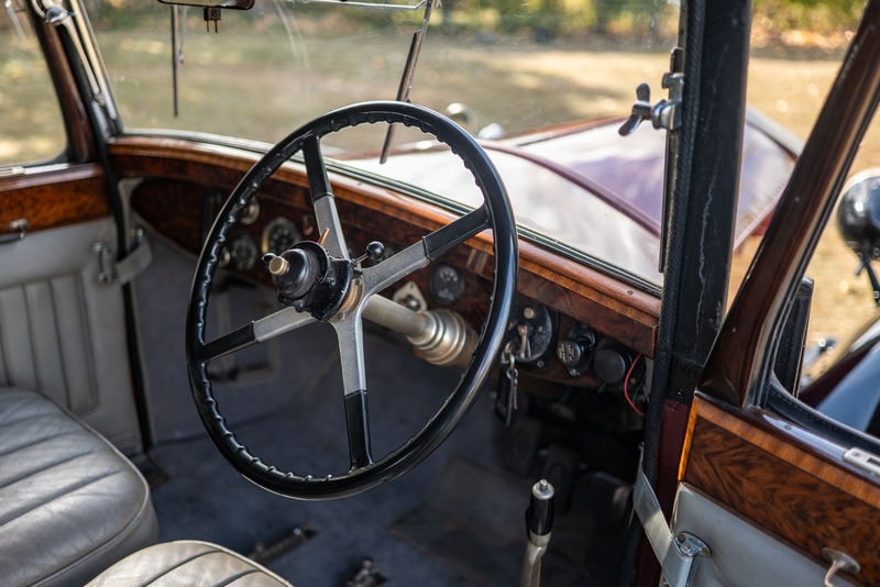 This 1930 example features the desirable 4-light Weymann saloon coachwork, known for its lightweight construction and distinctive styling. Having spent time in both the UK and America before being repatriated in 2005, this 20/25 offers a fascinating ownership history combined with a handsome colour combination of Red over Black with Grey hide trim that presents the car in a dignified yet striking manner.
