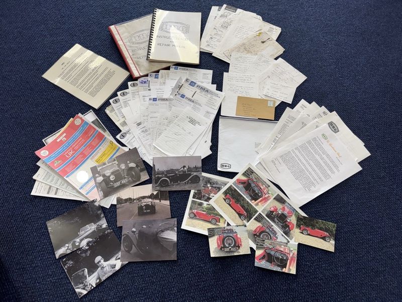 Vendor states the car's history file includes various maintenance invoices, old MOTs, and historical photographs and documents chronicling its history
