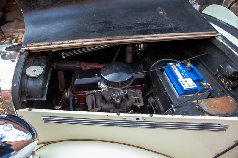 “My brief to Trevor was for the car to remain strictly to the original 1951 mechanical and electrical specifications and he was in the position to adhere rigidly to this. The engine was replaced at that time with a reconditioned one of 1074cc, the same as was fitted when new. An original detailed list of the work he did to the car at that time is available. The car came to me resplendent in new paintwork, hood, tonneau cover, trim and reconditioned arm indicators and it still looks great today.