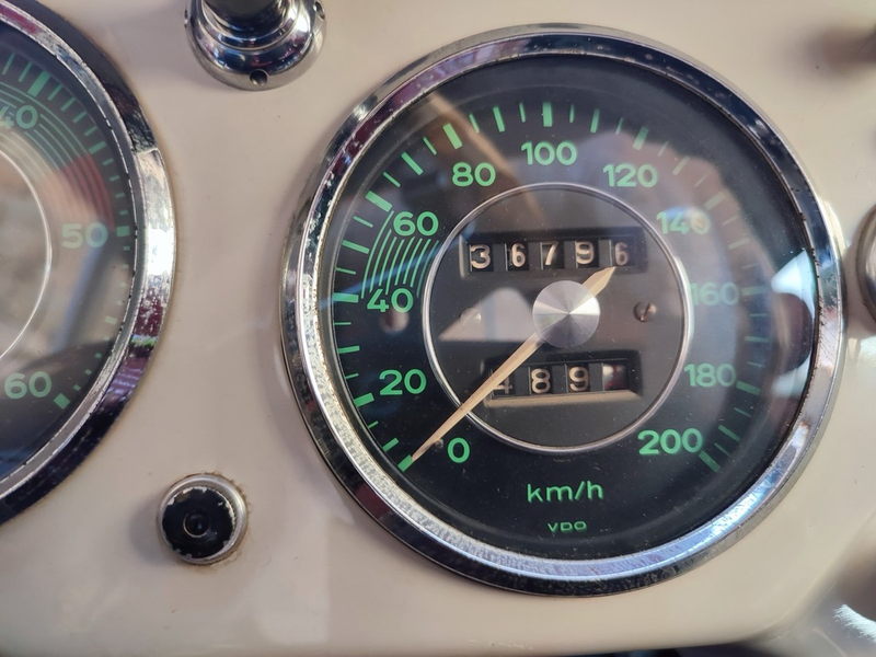 The vendor tells us that the car has had just four keepers, the current one since 2009. It was reportedly found in the 1990s with just 13,680kms on the odometer, and now shows 36,000 kms. It has covered only 1,000 kms since the current keeper acquired it. The 1990s restoration is documented in photos and included refurbishing the body and rebuilding the 1.6L air cooled engine.